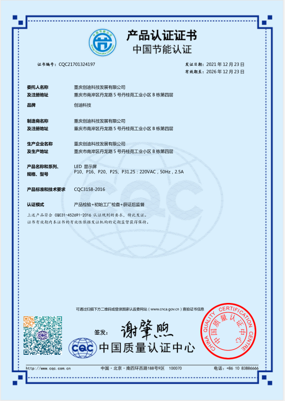 LED顯示屏節(jié)能認(rèn)證